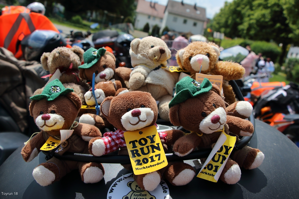 Meine Bärchen und ich möchten mit Euch aktiv den Verein „TOY RUN MOD e.V.“ in Marktoberdorf durch die Teilnahme am „TOY RUN“ (Motorrad-Ausfahrt) ganz nach dem Motto „fahren-feiern-helfen“ unterstützen.