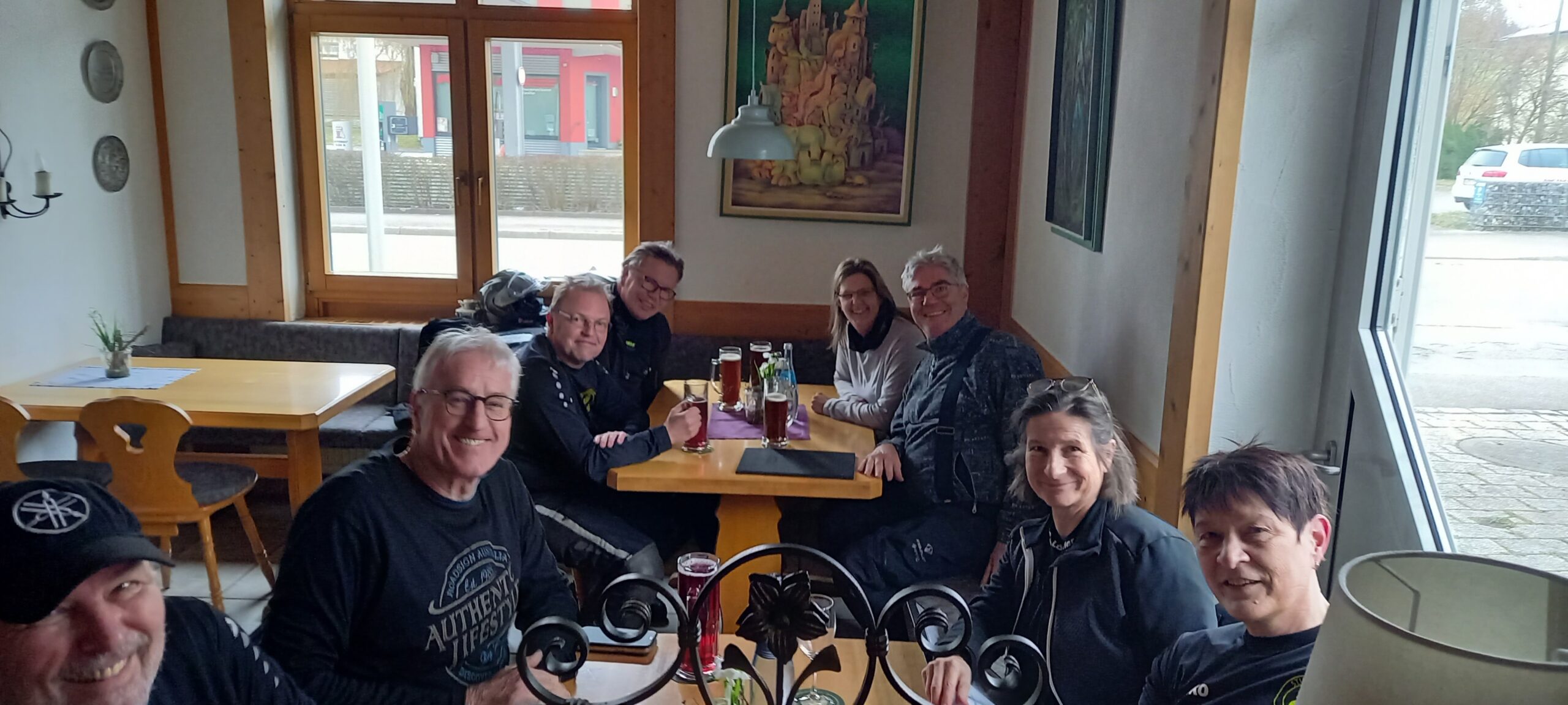 waren sich alle einig: Das war eine sehr gelungene und tolle erste Tour. Auch diejenigen, die zum ersten Mal dabei waren, waren voll des Lobes und es wurde bestätigt, dass es ein schönes flüssiges Tempo war. Die komplette Tour verlief gut – auch wenn sich mal jemand direkt in einer Kehre verschaltet und blöder Weise den Neutral erwischt – dann wird der vorhandene Sicherheitsabstand des Hinterherfahrenden zwar kurz mal aufgebraucht, aber bereits in der nächsten Sekunde beschleunigt man ja schon wieder gemeinsam aus der Kurve heraus – gemeinsame Erlebnisse halt.