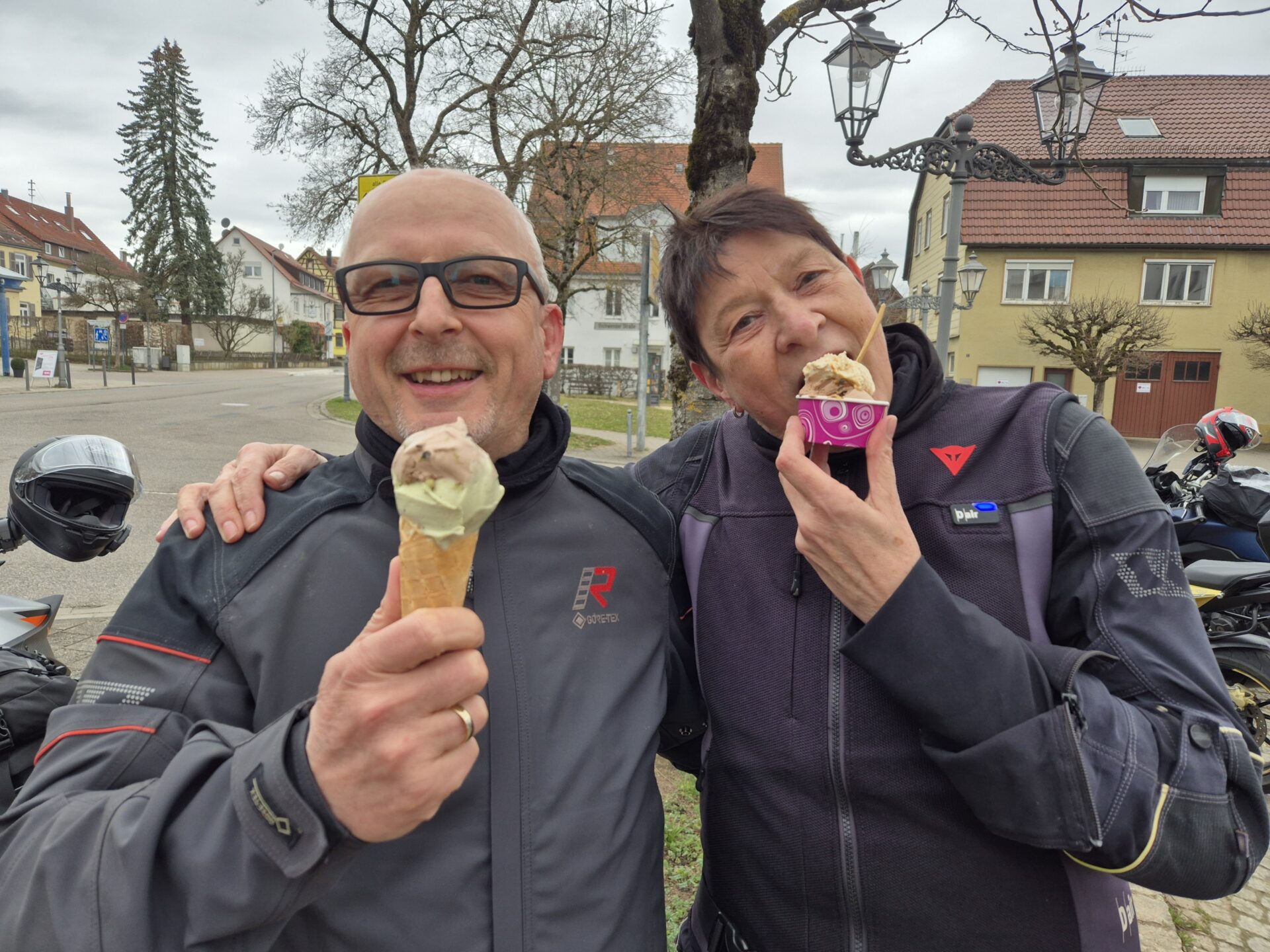 gab es dann die Möglichkeit das obligatorische Eis zu schnabulieren. Gut der ein oder andere verzichtete aufgrund der noch nicht ganz sommerlichen Temperaturen drauf und man unterhielt sich einfach ein bisschen. Nach dieser kurzen und leckeren Pause gab es eine eher rhetorische Frage von Simone, ob jemand hier die Tour beenden möchte oder ob alle noch über Berglen nach Winterbach fahren wollen – Unisono: In Winterbach endet die Tour.