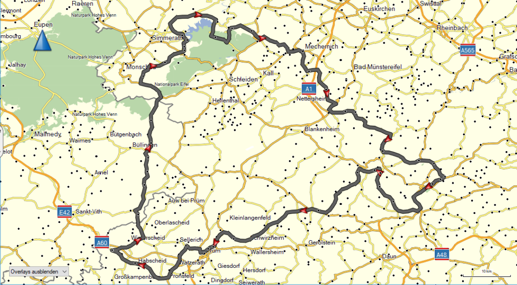 Über die Voreifel und die Vulkaneifel nähern wir uns Prüm. Nun noch kurz die Schneifel gestreift sind wir auch “schon” wieder zurück im Hotel.