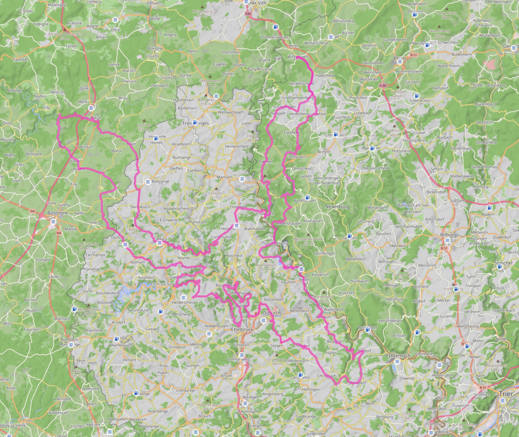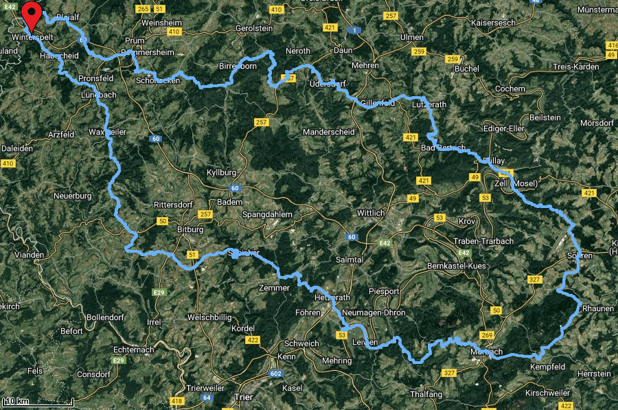Diese Tour startet Richtung Süden durch den Naturpark Südeifel ins Bitburger Land. Bitburg selber wird südlich umfahren, weil wir ja kein Bier brauchen.