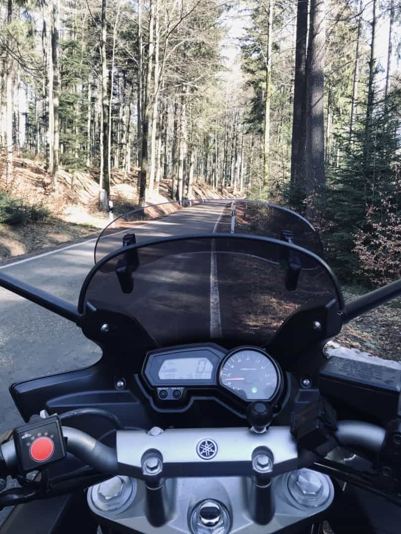 Jedenfalls habe auch ich ‘klein’ angefangen mit einer kurzen Tour mit der Tochter. Keine große Gruppe – keine lange Strecke – Gaanz gemütlich mal probieren ob noch alles funktioniert. Die Warnungen von allen Motorradclubs und dem ADAC beherzigend (die Autofahrer rechnen noch nicht mit schnellen Motorrädern) und immer auf der Hut vor Waldschneissen in denen noch Frost herrscht oder gefrorene Blätter vom Herbst rumliegen.