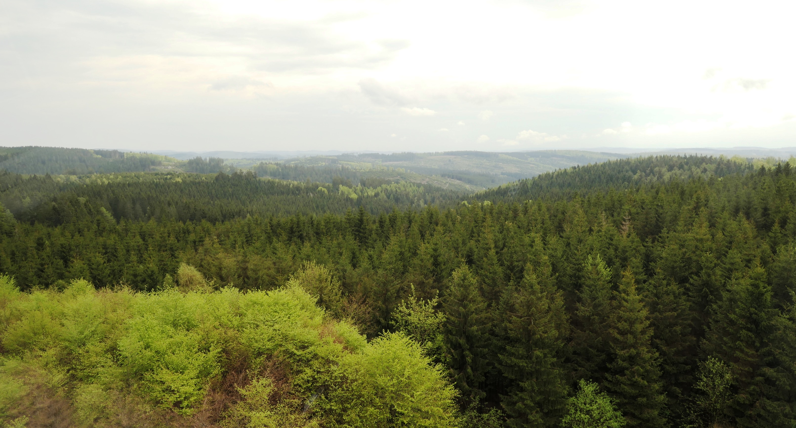 Über die Hochsauerland-Höhenstraße machen wir am “Kahlen Asten” (841m) Halt. Auf der Strecke fahren wir durch Wälder die keine mehr sind. Die Bäume die noch stehen, haben keine Rinde mehr, sie sind kahl. Kahl wie auch zahlreiche Flächen die schon abgeholzt wurden. Der Borkenkäfer hat hier ganze Arbeit geleistet und sich wie Pakman durch die Kiefernwälder gefressen. Ein erschreckend trauriges Bild.