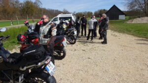 Über Ochsenwang und Wiesensteig nach Westerheim und Feldstetten. Durch Ennabeuren und die bekannt schönen Strecken über Justingen, Hütten und Grötzingen, Granheim streifend zum Parkplatz und Zigaretten-, Pinkel-, Vesper- und Plauder- Pause kurz vor Erbstetten. Zur Stärkung gab’s Verpflegung aus Koffer oder Tankrucksack – und natürlich Turbo-Kekse.
