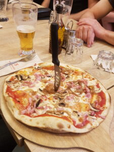 Unsere Fahrt führte uns weiter durch eine wunderschöne Landschaft, und zwischendurch machten wir Halt in einem Supermarkt, um uns für den Abend einzudecken. Schließlich erreichten wir unser Hotel, erschöpft aber glücklich. Nach einer kurzen Erfrischung machten wir uns auf den Weg zu einem italienischen Restaurant gegenüber dem Hotel. Dank Cat, bekam jeder von uns genau das, was er sich gewünscht hatte.