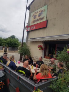 In einem verschlafenen Dorf gönnten wir uns eine Pause in der urigen Bar “Le Clin d’Oeil”. Die herzliche Wirtin machte sogar ein Foto von uns und postete es auf Facebook, was uns ein Lächeln ins Gesicht zauberte.