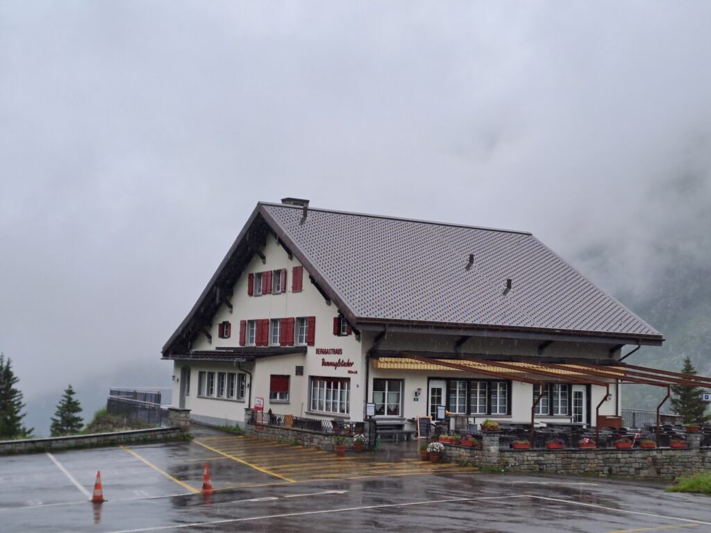 Um 20h treffen wir im Berggasthof Dammagletscher, am Fuße des Göschener Alpsee-Staudamms, ein. Brigitta, die Wirtin, öffnet für uns eine Garage und fast alle unsere Maschinen bekommen ein trockenes Plätzchen.