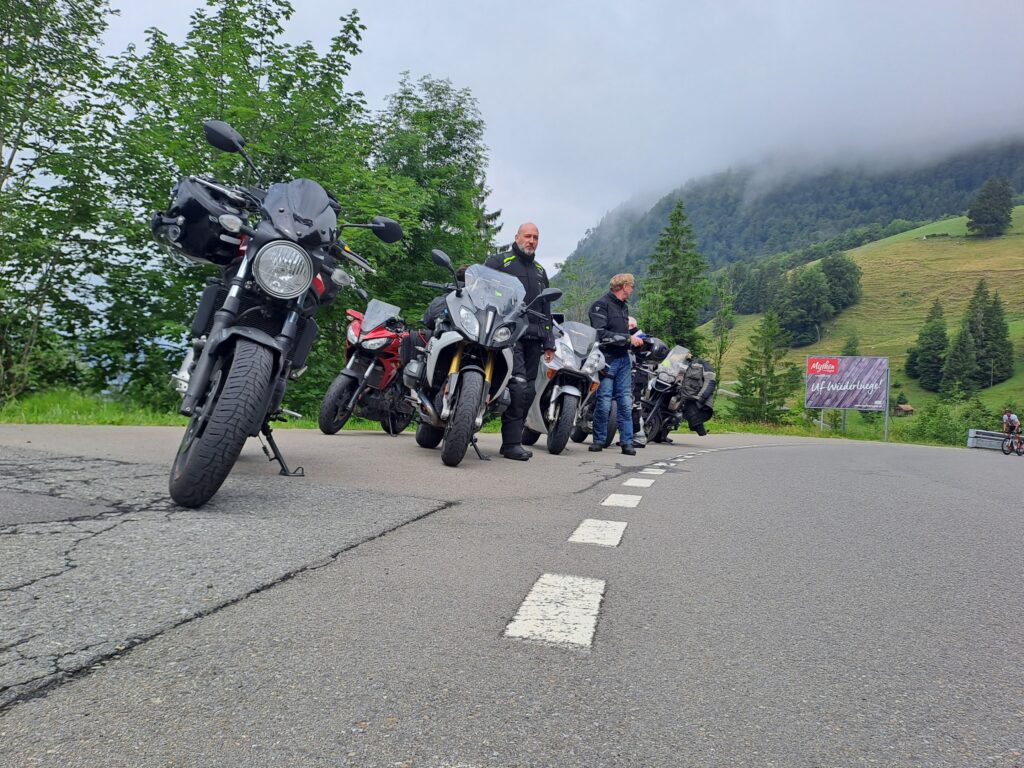 Über Land fahren wir durch Oberschwaben in Richtung Bodensee. An der österreichischen Grenze machen wir eine kurze Pause bevor es durch Österreich zur Schweizer Grenze geht. Offensichtlich machen alle gerade Mittag, denn die Grenze ist verweist. Chur wird uns etwas Geduld abverlangen, denn wir erreichen diesen Knotenpunkt im Berufsverkehr und der Stau, den wir zu überwinden haben, lässt unsere Sehnsucht nach den Bergen und Pässen ins Unermessliche steigen, denn wir schwitzen bei 28 Grad unter unseren Helmen. Die Schwiiizer leben ihre “Gemütlichkeit” also auch an den Kreisverkehren aus: “Fahr Du” – “nein Du” – “nein ist schon ok, Du kannst”… “*grmpffk! Fahr doch Du *****!!!!” klingt es durchs Sena….Diese schwierige Passage kostet uns mindestens eine Stunde…