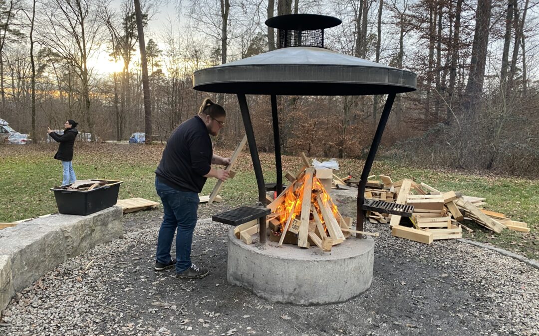 Dank der Initiative unserer Nicki trafen sich heut fast 20zig von uns unter großem Hallo zum Wintergrillen (auch wenn die Temperaturen eher angenehm waren und nicht viel mit Winter zu tun hatten). Bevor man zum gemütlichen Teil des Tages übergehen konnte war erst mal Arbeit angesagt. Das Holz wurde zur Feuerstelle 🔥🔥 geschleppt und die Biertischgarnituren ausgeladen. ( schließlich wollte man später ja auch mal hinsitzen und wenn es nur zum Futtern war).